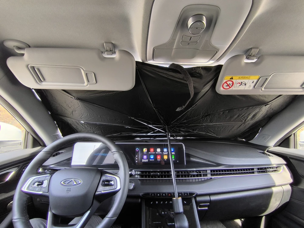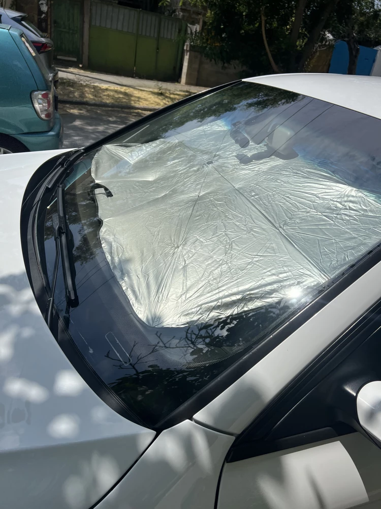 Очень удобный и стильный. Действительно помогает снизить температуру в салоне, особенно когда машина стоит летом под палящим солнцем